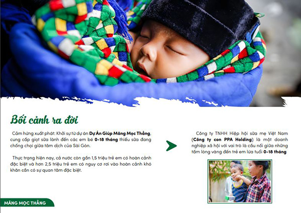 Khởi sự từ dự án Dự Án Giúp Măng Mọc Thẳng, cung cấp giọt sữa lành đến các em bé 0-18 tháng thiếu sữa đang chống chọi giữa tâm dịch của Sài Gòn. Thực tế là khi đứa trẻ mồ côi sẽ làm gì trong hành trình lớn khôn nếu thiếu đi trụ cột trong gia đình, liệu các con có được lớn lên một cách bình thường? Hay sẽ trở thành những đứa trẻ lang thang, không được đi học và đối mặt với một tương lai mờ mịt? Trải qua hành trình đối chọi với dịch bệnh vất vả, cùng với thực trạng hiện nay, khi cả nước còn gần 1,5 triệu trẻ em có hoàn cảnh đặc biệt và hơn 2,5 triệu trẻ em có nguy cơ rơi vào hoàn cảnh khó khăn cần có sự quan tâm đặc biệt. Là một doanh nghiệp cống hiến vì tương lai của trẻ em, chúng tôi vô cùng trăn trở.