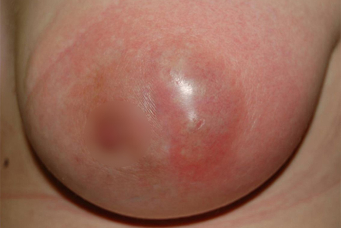 - Khu vực xung quanh cục u có thể đỏ, nhưng toàn bộ vú của bạn không đỏ.