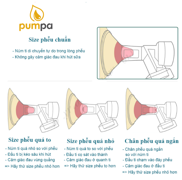 Vì vậy các mom cần lưu ý việc lựa chọn size của phễu để không gây ảnh hưởng tới chất lượng sữa và khiến đầu ti bị đau nhức, khó chịu.